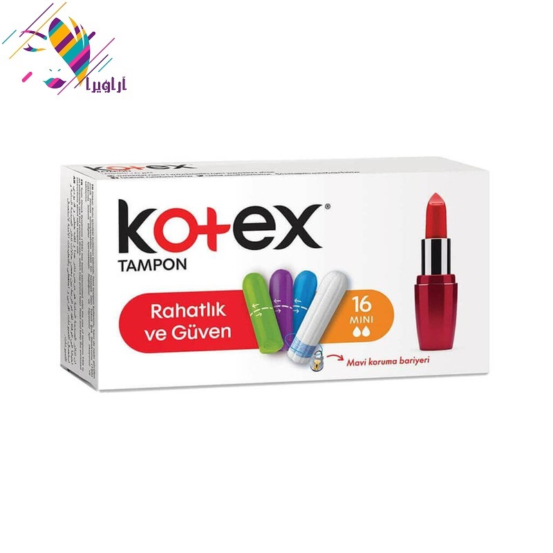 تامپون کوتکس مینی Mini بسته 16 عددی محصولی از شرکت آمریکایی کوتکس kotex و تولید ترکیه. تامپون پد بهداشتی فشرده، قابل استفاده به شکل واژینال می باشد و عمدتا جهت استفاده در مهمانی ها، استخر و هنگام ورزش کردن می باشد. نوار آبی محافظ در پایین تامپون و همچنین قدرت جذب بسیار بالای آن از خروج مایعات به بیرون جلوگیری می کند.