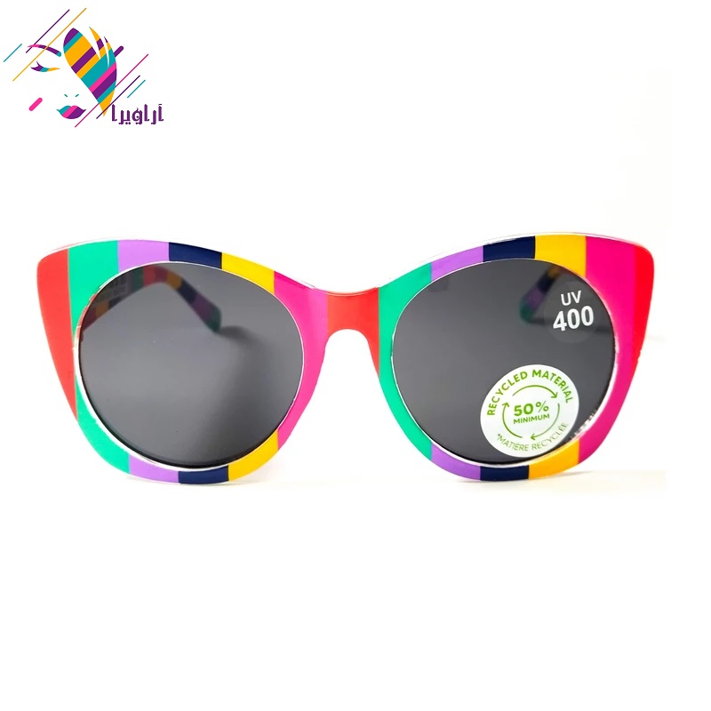 عینک آفتابی دخترانه رنگین کمان ضد اشعه UV-400 به همراه بگ عینک